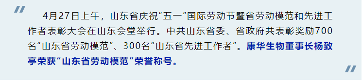 載譽(yù)歸來(lái) | 康華生物董事長(zhǎng)楊致亭榮獲“山東省勞動(dòng)模范”榮譽(yù)稱號(hào)!